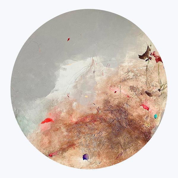 SpecificationsPainting, drawing and etching on layers of venetian plaster applied on a 1" thick wooden circle