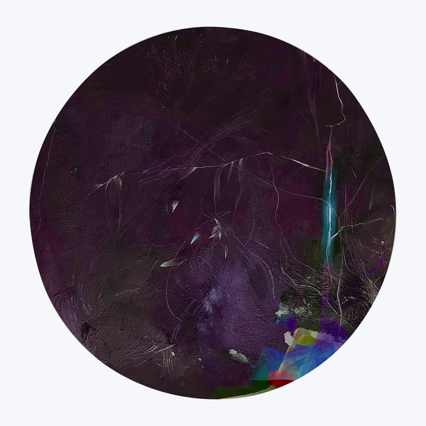 This custom piece from the Through The Moon series features an intricate and moody abstract design. It has a stunning display of visual impact that features a dark black background in harmony with hints of purples, blues, reds, and greens. This breathtaking work of art by Beata Pankiewicz is a study in duality that shifts between manmade and natural worlds as raw texture contrasts with intricate whimsy and organic imperfections. The complexity and abstract nature of her art allows for...