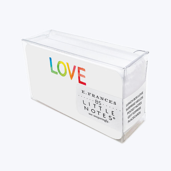 A simple and sweet way to help brighten their day with love. Little Notes include 85 sweet little notecards, cozily boxed together for you to use unsparingly. Perfect to use as lunch box notes, gift toppers, place cards, gentle reminders and a million and one more uses. Made in the USA, each E.Frances card begins as an original watercolor painting that is then printed in brilliant color.