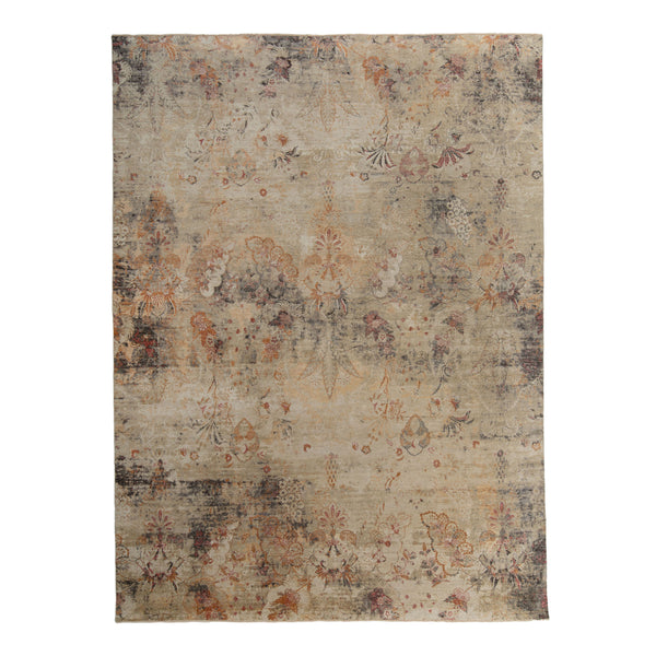 This Brown and Grey Samoke Transitional Wool Silk Rug - 9' x 11'9" is a smoldering blend of soft greens, caramel browns, grey, and red hues within an abstract design, a reinvention of traditional motifs rendered contemporary through a unique distressed effect. The muted motif adds a timeless sophistication to any room with a soft, shifting sheen that catches the light as you view it from different angles thanks to its silk construction while remaining durable enough for daily use...