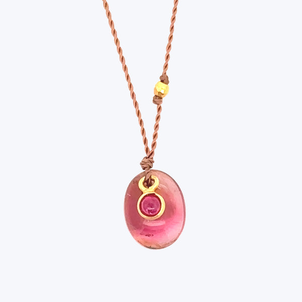 18Kt Gold Bezel + Bead/14Kt Gold Clasp, Tourmaline + Ruby