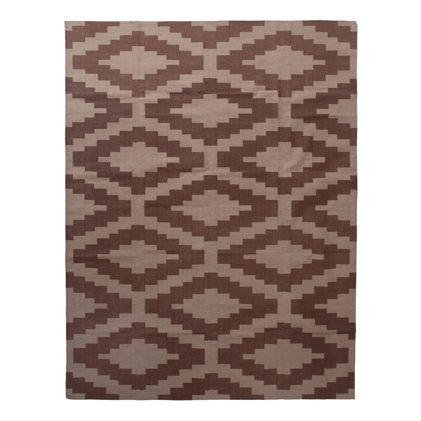 In the heart of your living space, the Cream & Brown Flatweave Cotton Rug makes its presence known, not just as a mere accessory, but as a distinguished statement of style and quality. Measuring an expansive 8'1" by 11'1", this rug hails from the skilled hands of Indian artisans, crafted with a precision that speaks of tradition and meticulous attention to detail. The flatweave Kilim construction imbues it with durability without the burden of weight, a resilient choice for bustling...
