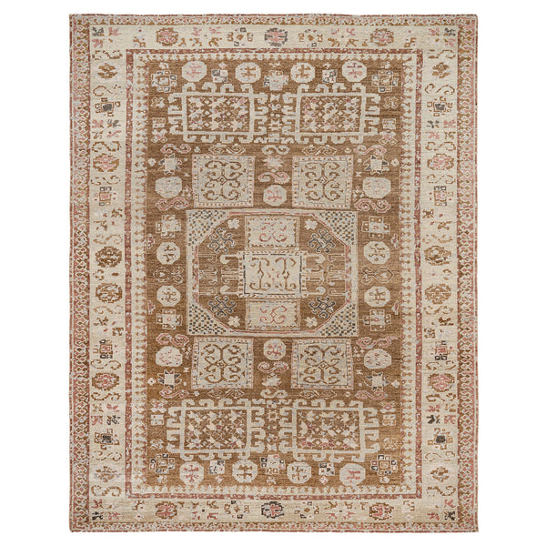 This Traditional Handwoven Wool Rug - 6' x 9' features a timeless tribal pattern in modern shades of brown, pink, and beige. Hand-crafted rugs are created over many months using techniques that have been passed down from generation to generation. This level of detailed craftsmanship means this traditional rug is made to last.