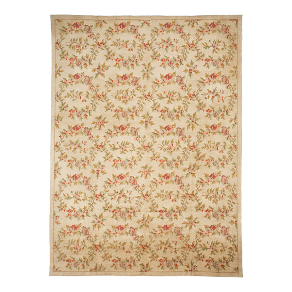 The Beige Traditional Tibetan Wool Silk Blend Rug is a stunning addition to any space. Hand Knotted in Nepal, this 10' x 13'9" traditional rug features a classic floral pattern in shades of red, pink, and green on a light beige background. The wool silk blend offers a luxurious texture and exceptional quality. Add a touch of elegance to your home with this exquisite piece.