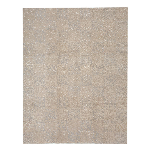 This Grey Contemporary Tibetan Wool Silk Blend Rug is a luxurious addition to any home decor. Hand Knotted in Nepal, this 9'1" x 12'1" rug features a neutral color palette of beige and light gray in an abstract leopard-like pattern. The textured design adds sophistication and modernity to any room, while the premium Wool Silk Blend material ensures durability and quality.