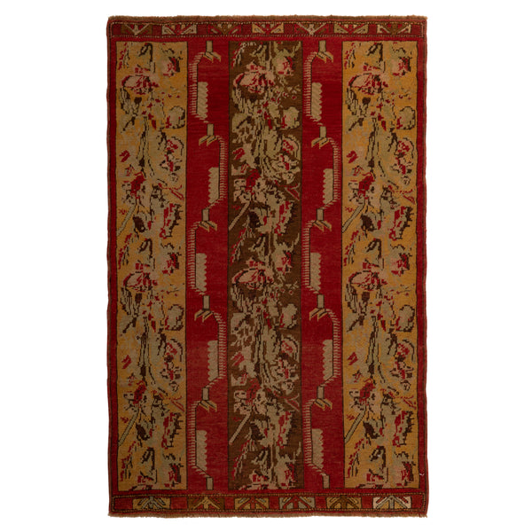 A tapestry of rich hues, this multicolored traditional wool rug transforms any space it graces. Hand-knotted with precision in Turkey, its dimensions—3 feet 5 inches by 5 feet 3 inches—cater to versatile placement, whether anchoring a living room’s heart or lending warmth to an intimate bedroom corner. Deep reds and warm golden-beige tones dominate the palette, with earthy browns threading through and whispered hints of darker shades. It's a symphony of color that speaks to both tradition and art. The...