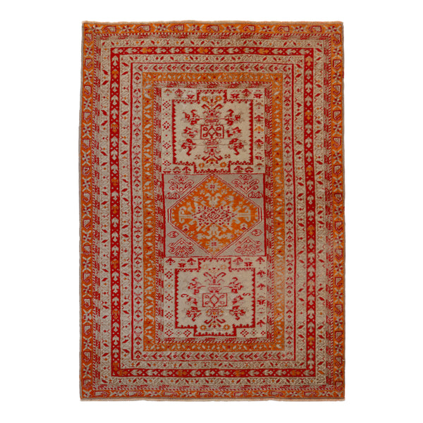 This Traditional Wool Rug - 3'6" x 5'1" interprets a medley of vintage-style medallion and floral motifs in vibrant orange hues. Marrying historical style with modern artisanship & material, our collection of traditional rugs is filled with beloved patina for a rich timeworn texture. Each handmade rug is one-of-a-kind and reformed with respective care & attention.