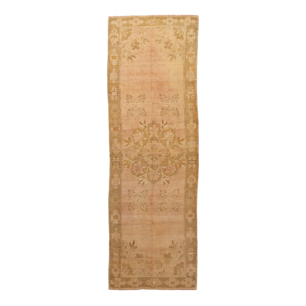 The allure of a hand-knotted wool runner lies not just in its function but in its ability to transform space with effortless grace. This particular piece, measuring an elongated 4'1" by 12'7", hails from Turkey—a country where the artistry woven into rugs is nothing short of legendary. Its soft beige foundation serves as a sophisticated base, inviting one to appreciate the whispers of olive green that form an intricate dance of floral motifs and a commanding central medallion. Hints of...