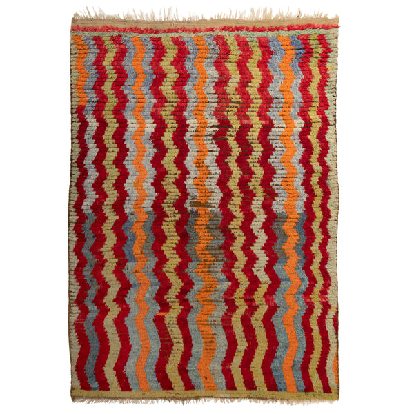 Bold. Vibrant. Enduring. This traditional wool rug stands as a testament to expert craftsmanship and thoughtful design. Measuring 5'6" by 7'9", it embodies versatility, fitting seamlessly into diverse spaces—whether grounding a living room seating area, delineating a dining space, or adding warmth to a bedroom. The rug breathes longevity, woven from natural wool known for its durability and soft touch. It whispers comfort, subtly insulating and softening the acoustic landscape of a room. Originating from Turkey, each hand-knotted fiber tells...