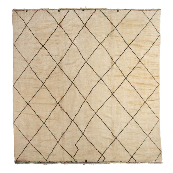 This isn't just a rug; it's an experience—a vast expanse of natural wool that transforms the concept of flooring from mere utility to opulent artistry. Imagine stepping into a living area or sprawling commercial space and being greeted by a 17-foot by 32-foot masterpiece, hand-knotted by Moroccan artisans. This rug, with its creamy, undyed wool base, doesn’t just sit quietly below; it envelops the room in a serene, grounded warmth. The geometric pattern of dark, intersecting lines isn't just a...