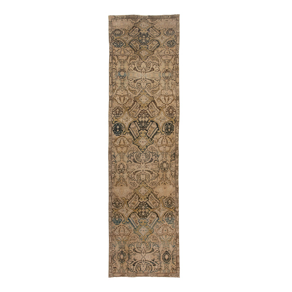 Elegance slips quietly through the halls with this hand-knotted wool runner, a testament to the enduring artistry of Turkish craftsmanship. Measuring a striking 4'1" by 14'9", it whispers of sophistication in spaces craving both grace and practicality. With its long, slim profile, it's a dream come true for those corridors at home that seem to stretch forever, or for entryways that demand a warm, inviting embrace. The rug unfolds in a landscape of gentle beige, a shade that serves not...