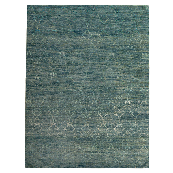 A fresh take on traditional motifs and patterns, this Transitional Hand-Knotted Rug - 9' x 12' will add a graceful energy to ground your room while providing modern color with shifting shades of green, blue, and cream. Although contemporary in style, this area rug is created using traditional techniques by artisans in India who hand-knotted this rug using a mix of wool, silk, and cotton fibers. This quality and care ensure a long life of usability for this transitional area...