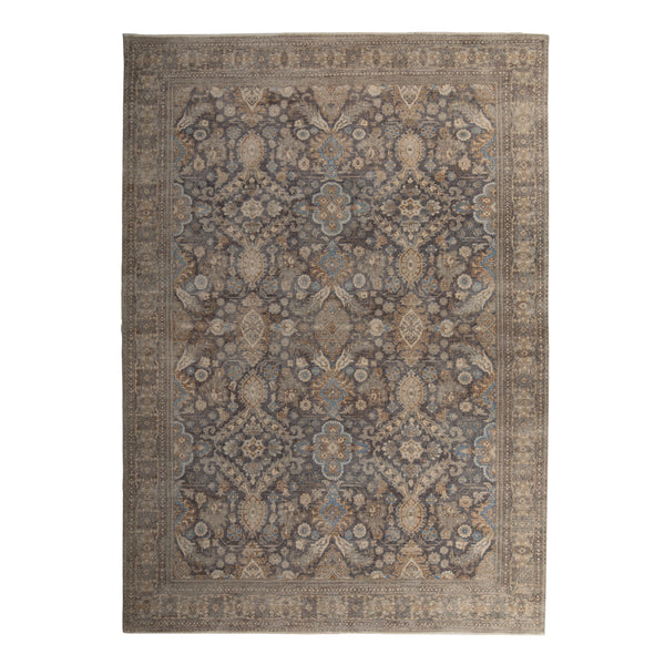 The Hazel & Brown Sabideh Traditional Wool Rug is a hand-knotted area rug designed to enhance traditional and transitional interiors. Measuring 10 feet by 14 feet, this rug provides a substantial foundation for large living rooms, dining areas, or master bedrooms. This rug features a Sabideh pattern, characterized by its intricate, classic motifs. The field is a blend of deep charcoal and muted blue-grey, providing a rich, grounding base. Detailed patterns are woven in complementary tones of hazel, light brown,...