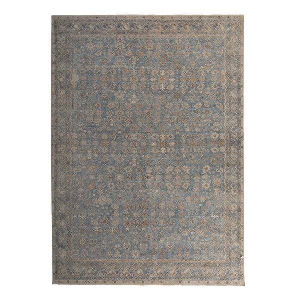 Blue Sabideh Distressed Traditional Wool Rug - 10'x14'