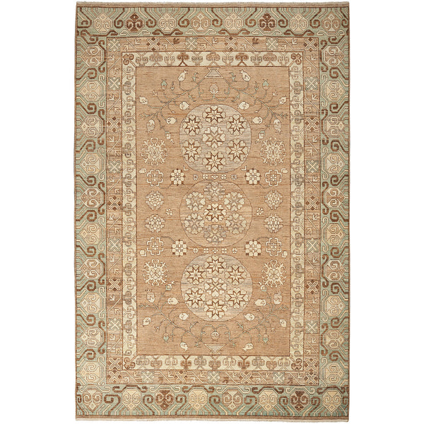Beige Traditional Medallion Wool Rug - 8'8" x 13'2"
