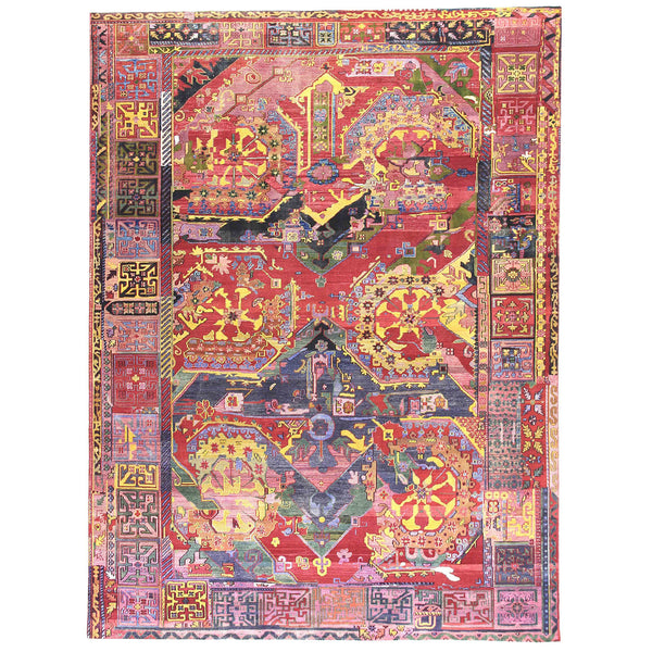 Hand-knotted in Jaipur with fiber spun from recycled sari silk and wool, this Alchemy rug reimagines an Agra pattern in a striated palette made luminous by sun power, low-impact dye, and closed-loop water washes. Through innovative technique and subtle yet vivid colors, this eco-conscious rug offers a brilliant and expansive focal point in any interior.