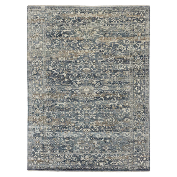 Displaying some of the most important patterns in the history of rug making, this Blue & Grey Transitional Wool Rug - 9' x 12' marries high fashion with vintage appeal. Hand-knotted from durable wool by rug artisans in India, this transitional rug showcases an abstract backdrop of distressed blue, slate, and brown that meld with an overlay of traditional motifs of florals, vines, and intricate borders. Finished with an eye-catching fringe, this transitional rug is the perfect example of contemporary...