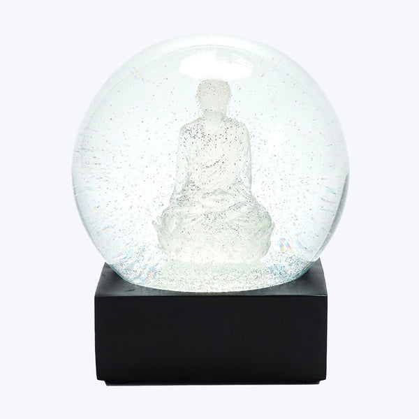 Illuminated in fine, silver confetti, this translucent Buddha represents enlightenment and peace, two fitting moral pillars for the holiday season. Each globe melds sophistication with whimsical delight.