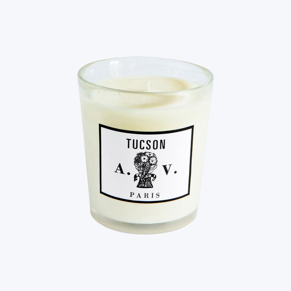 The Tucson Candle contains essences of Rosemary, Immortelle, Rose, Atlas Cedar, Lignum Vitae, Vetiver, Birch, Labdanum, Oregano, Thyme, Laurel, Black Pepper and Patchouli. Perfume designed with Alexandra Monet. The wax formulation, plant-based with a touch of beeswax, is unique. Free from paraffin or petrochemical derivatives, and therefore free from soot, its exceptionally supple and tender texture is a guarantee of its purity. The wax, worked for a long time, is perfectly miscible with the perfume, releasing the scent both hot...