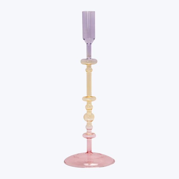 This Ombré Ornamental Glass Candlestick pairs perfectly with enchanting table settings for every season. This glass taper candlestick is blown in a sophisticated bubble shape with a colorful ombré tint. A beautiful addition to your bookshelf, coffee table, or entryway display.