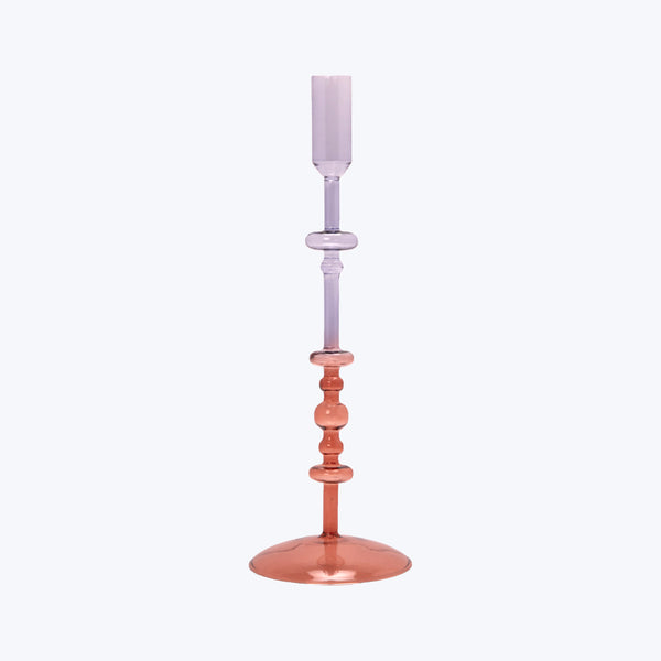This Ombré Ornamental Glass Candlestick pairs perfectly with enchanting table settings for every season. This glass taper candlestick is blown in a sophisticated bubble shape with a colorful ombré tint. A beautiful addition to your bookshelf, coffee table, or entryway display.