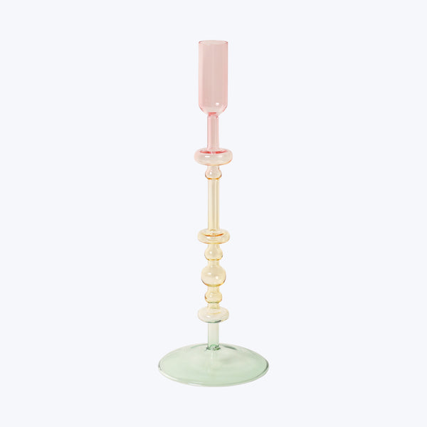 This Ombré Ornamental Glass Candlestick pairs perfectly with enchanting table settings for every season. This glass taper candlestick is blown in a sophisticated bubble shape with a colorful ombré tint. A beautiful addition to your bookshelf, coffee table, or entryway display.