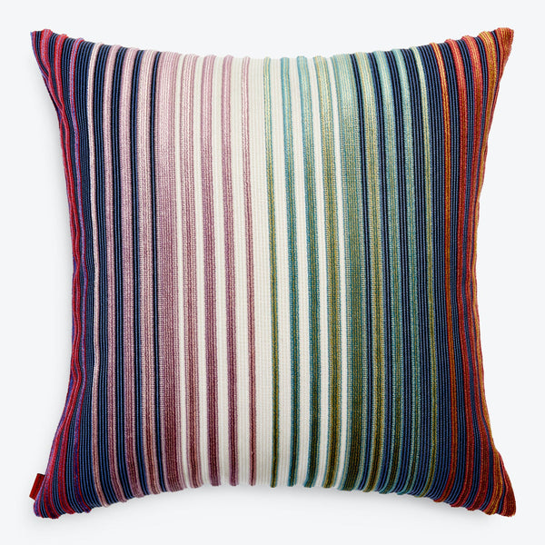 Polychromatic velvet stripes inspire passionate fantasy, fusing inspiration with time-honored technique. Crisp lines and an array of cool tones mark the palette with which Missoni Home designed the Tunisi pillow, a standout piece to add a touch of vibrancy.