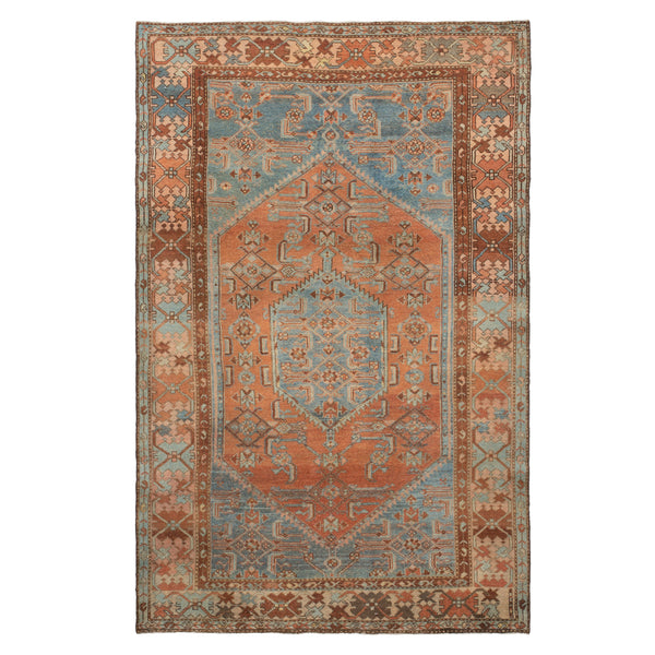 Expertly hand-knotted with an extraordinary level of precision, this Turkish Sabideh Rug - 6'8" x 4'3" is a true collector's gem. This one-of-a-kind rug features a timeless traditional design in blue, brown, and orange tones. Elevate your living room, bedroom, or dining room with this sustainable centerpiece made of durable wool.