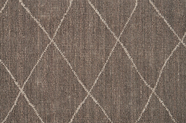 Urban Custom Carpet features a modern geometric pattern of intersecting white lines on a dark background. Hand-loomed in India from 100% Wool, this high-end rug adds texture and quality to any space. Perfect for adding a touch of sophistication to your home decor.