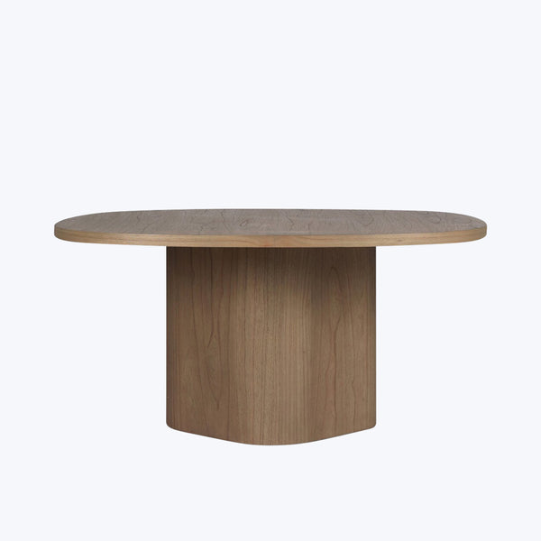 Anchor your space in wooden beauty with the Valli Dining Table by Four Hands. Crafted in solid mindi wood with a light, sandy finish, this monolithic piece features a unique "squircle" tabletop and substantial plinth base with graceful curves. A striking addition to warm, contemporary spaces.