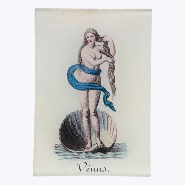 Using reproduced imagery from John Derian's vast collection of antique and vintage prints, trained artisans cut and collage each design onto handblown glass creating each special work of art.