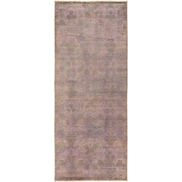 This Purple Transitional Wool Runner measures 4 feet 2 inches wide by 10 feet 2 inches long. Its design blends classic motifs with a contemporary aesthetic, creating a versatile piece for various interior styles. The runner features a muted purple base with subtle, faded botanical or damask patterns in complementary tones, offering a sophisticated visual texture. Crafted from durable wool, this runner provides a soft yet resilient surface. It is hand-knotted in Pakistan, a construction method known for its strength...