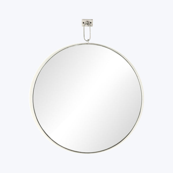 Graceful form meets industrial edge in the Vina Mirror by Four Hands. Featuring an elegant rounded shape and eye-catching suspension, the Vina evokes a full moon floating in the night sky. An exquisite addition to modern and contemporary interiors. Available in Antique Brass, Antique Silver, and Antique Iron.