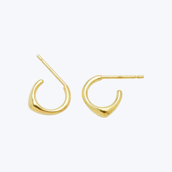 This pair of Wave Huggies Earrings is an exquisite shape that perfectly hugs your ear in the first or second hole. This pair of polished 18k gold huggie earrings feature a carved shape that swells slightly at the bottom for a contemporary take on a timeless classic. An easy way to dress up the everyday.