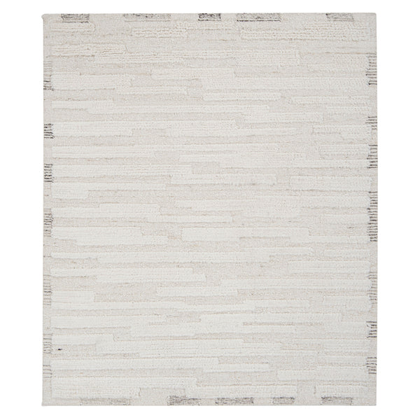 The Ivory Moroccan Berber Wool Rug - 8' x 10' is a luxurious addition to any interior. Hand-knotted in India, it features a monochromatic off-white color scheme, with a subtle stacked brick pattern. High-quality wool construction and varied texture add to the rug's tactile appeal. Perfect for adding warmth and sophistication to your living space.