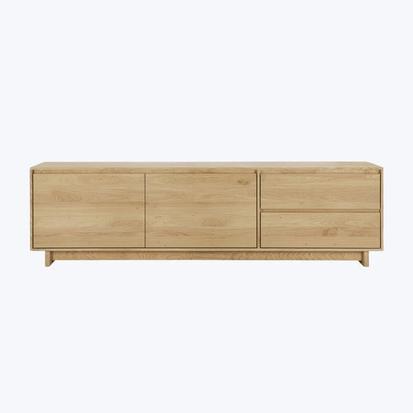 The Wave TV Cupboard by Ethnicraft has a minimalist Scandinavian feel, perfect for warm, contemporary interiors. Crafted in solid and oiled oak, the Wave TV Cuboard’s doors and drawers are designed with a soft closing mechanism rather than traditional handles. An exquisite foundational piece for any living space.