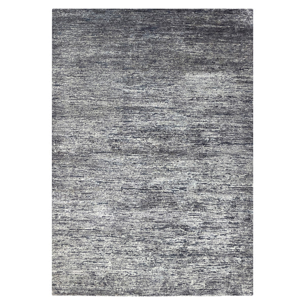Black Solid Textured Wool Silk Blend Rug - 6' x 9'