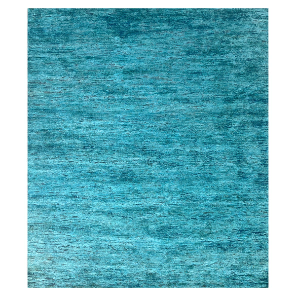 Blue Solid Textured Wool Silk Blend Rug - 8' x 10'