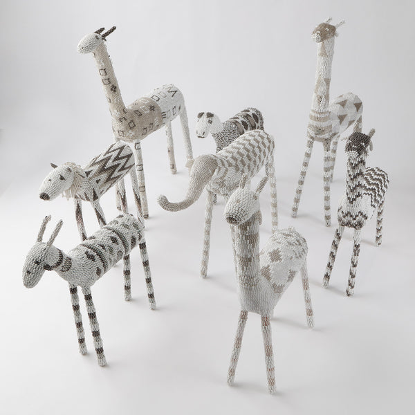 This White & Silver Beaded Elephant brings bright energy into your home. Revive your decor with this one-of-a-kind art. Monkeybiz is dedicated to reviving the tradition of African Beadwork by creating sustainable employment for a vibrant community of over 300 bead artists in South Africa. Each Monkeybiz artwork is unique and created by hand using traditional methods of beading with needle and thread. Every colorful and creative beaded artwork is signed by the artist to ensure individual artists receive recognition for their work...