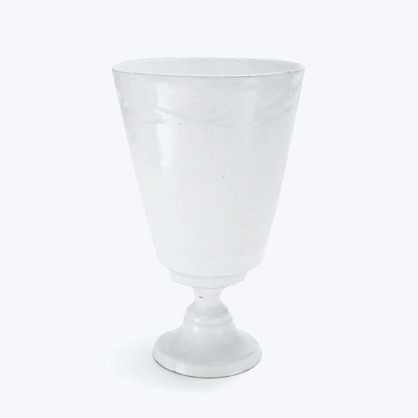 Inspired by the lines of a French goblet, this vase from Astier de Villatte features subtle, hand-formed details at its pedestal base. Handmade on the Rue St. Honore in Paris, these 18th-century inspired ceramics are crafted in a traditional pottery style passed down from generations. Hand molded from black terracotta, each piece is finished in a milky-white glaze that highlights the unique character of the clay, celebrating its imperfections and ensuring that no two pieces are exactly alike. Romantically bohemian,...