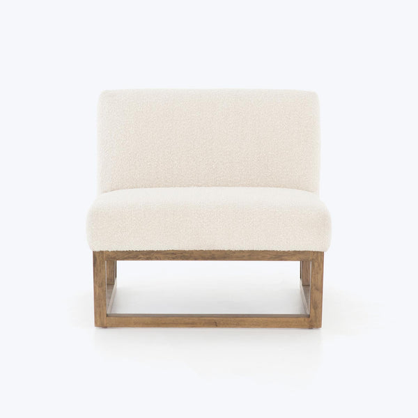 Comfort meets sophistication in perfect harmony with the Wood Base Lounge Chair from abc's Four Hands Furniture Collection. This chair features a sturdy wooden base that adds an earthy touch, grounding the sleek design with natural warmth and elegance. Its timeless appeal makes it a versatile addition to any home. The standout feature of the Wood Base Lounge Chair is its spring suspension cushion, upholstered in a high-performance fabric in a soothing ivory hue. This cushion provides not only plush...
