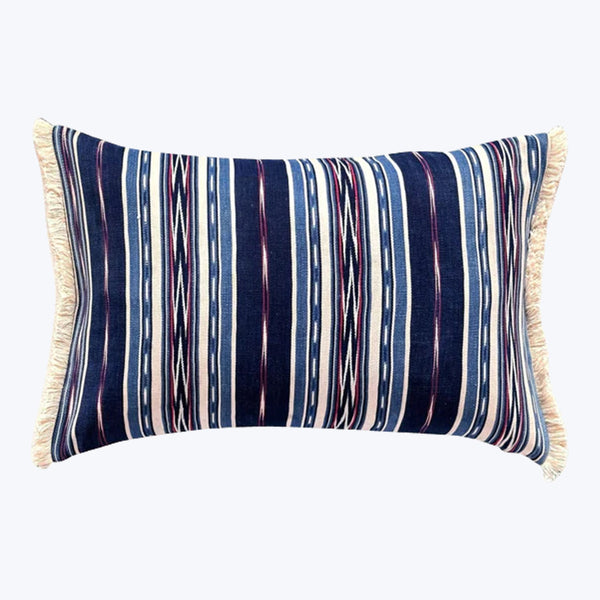 Discover the Woven Poncho Lumbar Pillow by Threads Soft Goods. Featuring a vintage poncho motif in indigo hues, this beautiful pillow brings vibrant color to any room. A stunning addition to eclectic, global spaces. Backed in linen. Crafted in Ecuador. Available in 13Ó x 20Ó and 16Ó x 24Ó editions.