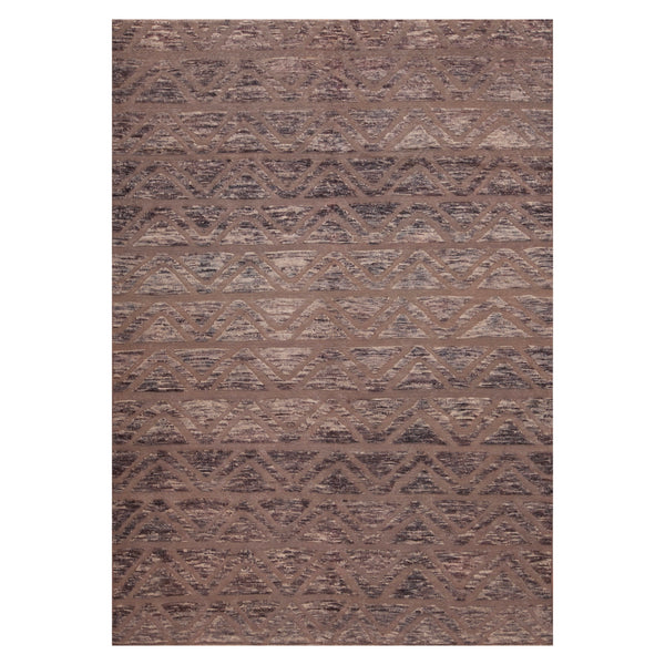 This Brown Zameen Contemporary Wool Rug is a luxurious 6'7" x 9'4" hand-knotted masterpiece from India. Featuring a blend of warm brown hues and a unique contemporary pattern, this rug adds sophistication to any space. Crafted from high-quality wool, it offers a plush texture and lasting durability.