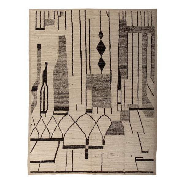 Black & Cream Zameen Modern Wool Rug - 10'8" x 13'10"