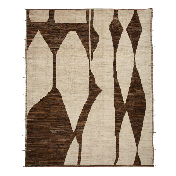 Brown & Cream Zameen Transitional Wool Rug - 13'10 x 15'10"