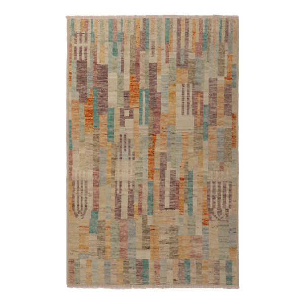 Zameen Multicolored Modern Wool Rug - 3'10" x 5'11"