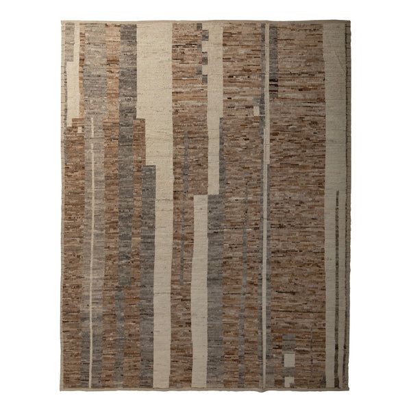 This Zameen Transitional Wool Rug provides a combination of traditional craftsmanship and contemporary design. Measuring 9'6" x 12', this large area rug is suitable for various room sizes, including living rooms, dining areas, and master bedrooms. The rug is constructed from durable wool, offering a soft texture and natural resilience. It features a hand-knotted construction, a traditional method originating from Central Asia, which ensures the rug's strength and longevity. This handcrafted process contributes to the rug's unique character and a...
