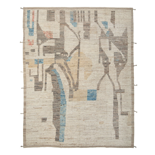 This Grey Zameen Transitional Wool Rug measures 10'4" by 12'2", offering substantial coverage for larger living spaces. Crafted from natural wool, this rug provides a durable and soft foundation underfoot. Wool is a resilient material known for its natural stain resistance and insulating properties, making it suitable for active areas in the home. The rug features a hand-knotted construction, a traditional method originating from Central Asia. This technique ensures each rug is a unique piece with lasting quality and durability,...