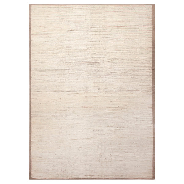 The Natural Zameen Textured Wool Rug, measuring 12'2" x 17'5", offers a substantial floor covering suitable for various large spaces. Categorized under Natural Designs & Materials, this rug features organic aesthetics and a genuine wool composition. Constructed from 100% wool, the rug displays a subtle, linear texture across its surface in a natural color. This texture adds visual interest without introducing distinct patterns. Each piece is hand knotted in Central Asia, a method that showcases traditional craftsmanship and results in...