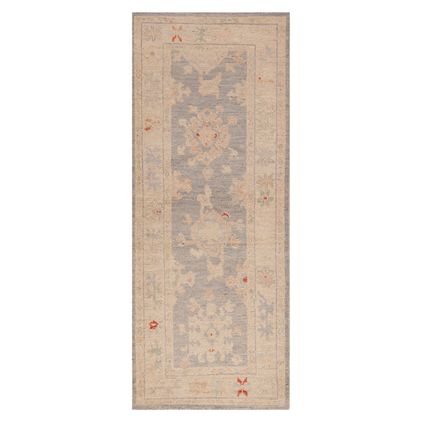 The Blue Zameen Transitional Wool Runner is a hand-knotted textile originating from Central Asia, designed to complement a range of interior styles. This piece measures 2'9" in width by 6'9" in length, providing a rectangular format suitable for various spaces. Crafted from natural wool, this runner features a transitional design. The central field displays a muted blue-grey hue, adorned with stylized traditional motifs in cream and beige tones. This central panel is framed by a lighter, contrasting border, which incorporates...